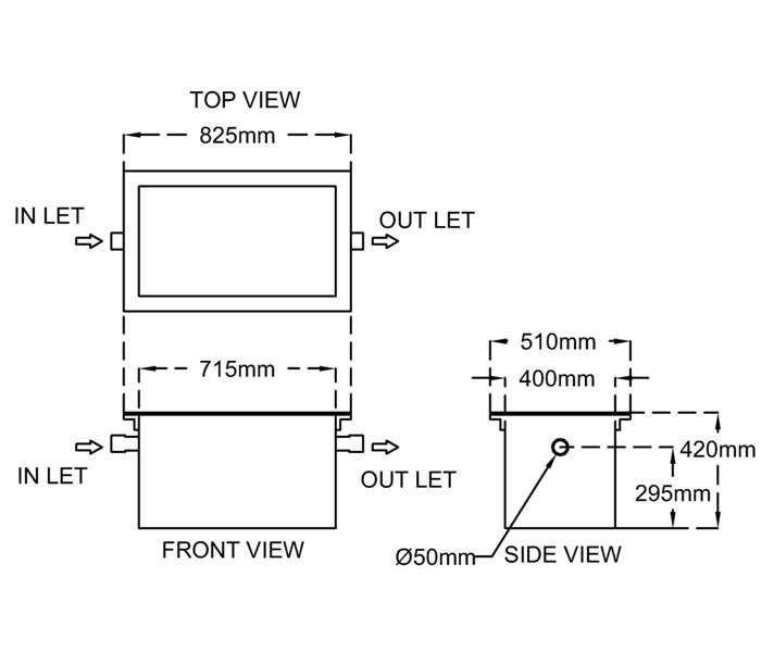 2” inch or 50mm diameter inlet and outlet pipe with coupling end is provided.